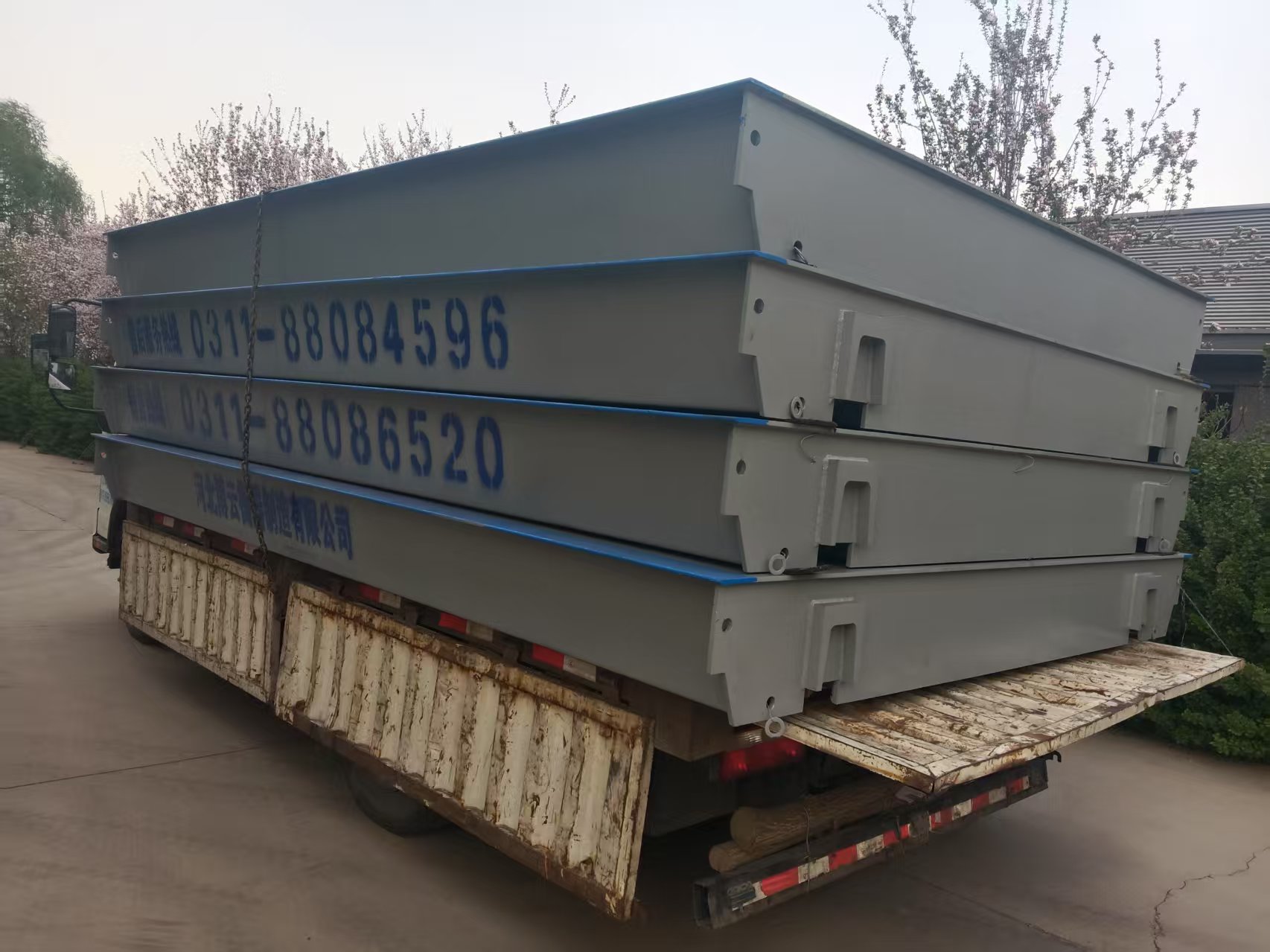 中糧邢臺柏鄉 8臺15噸移動磅 已發貨;山西華慶鋁業 150噸 已發貨;邢臺豐源造紙廠 50噸已發貨;天津臨港勝科稅務 100噸已發貨;河北利順肥料(保定) 100噸生產中